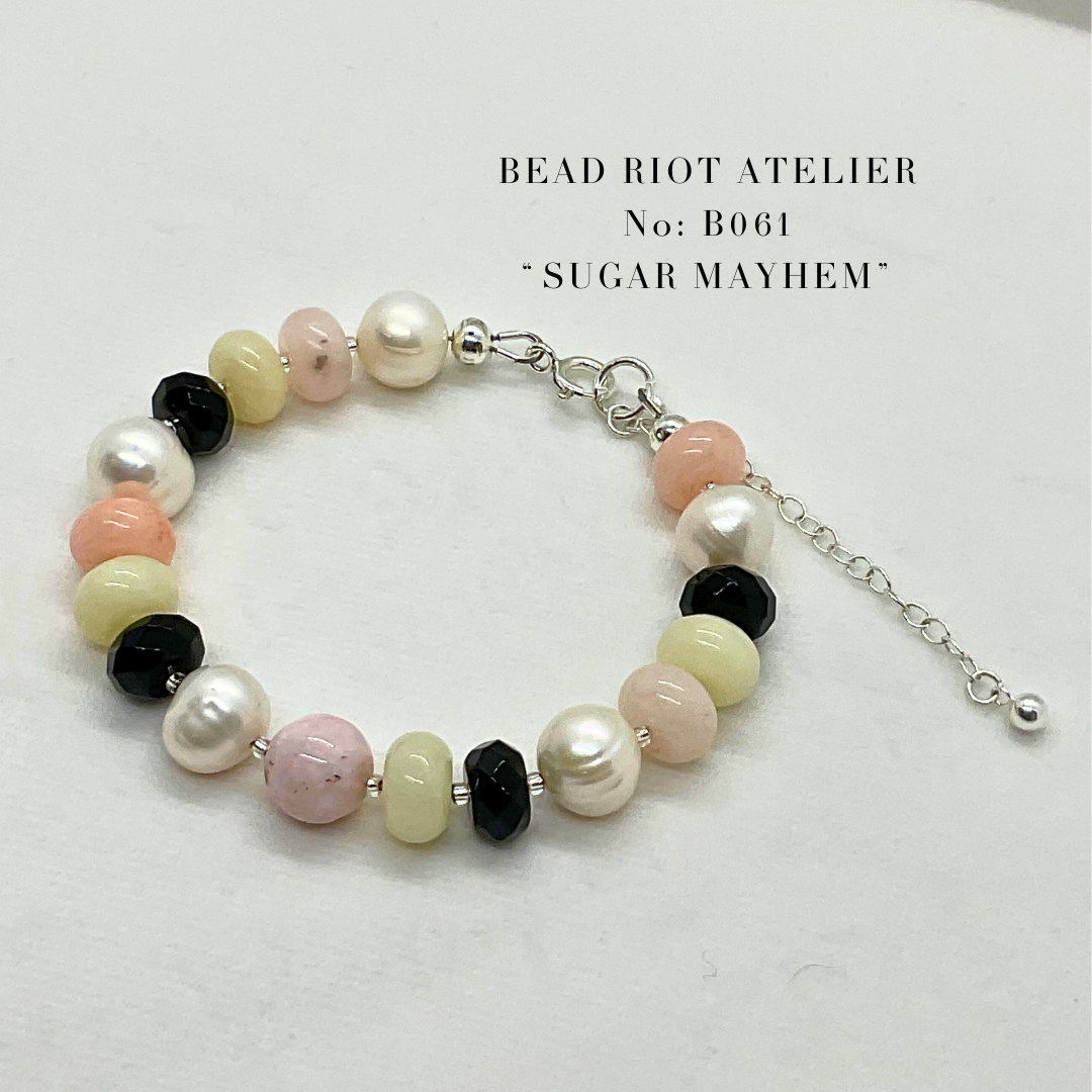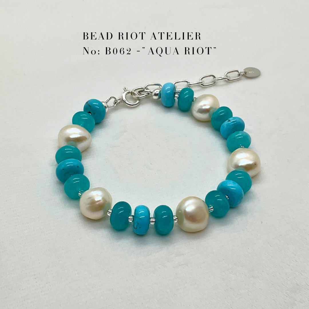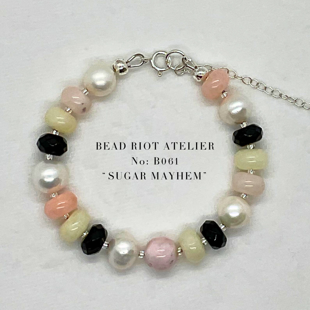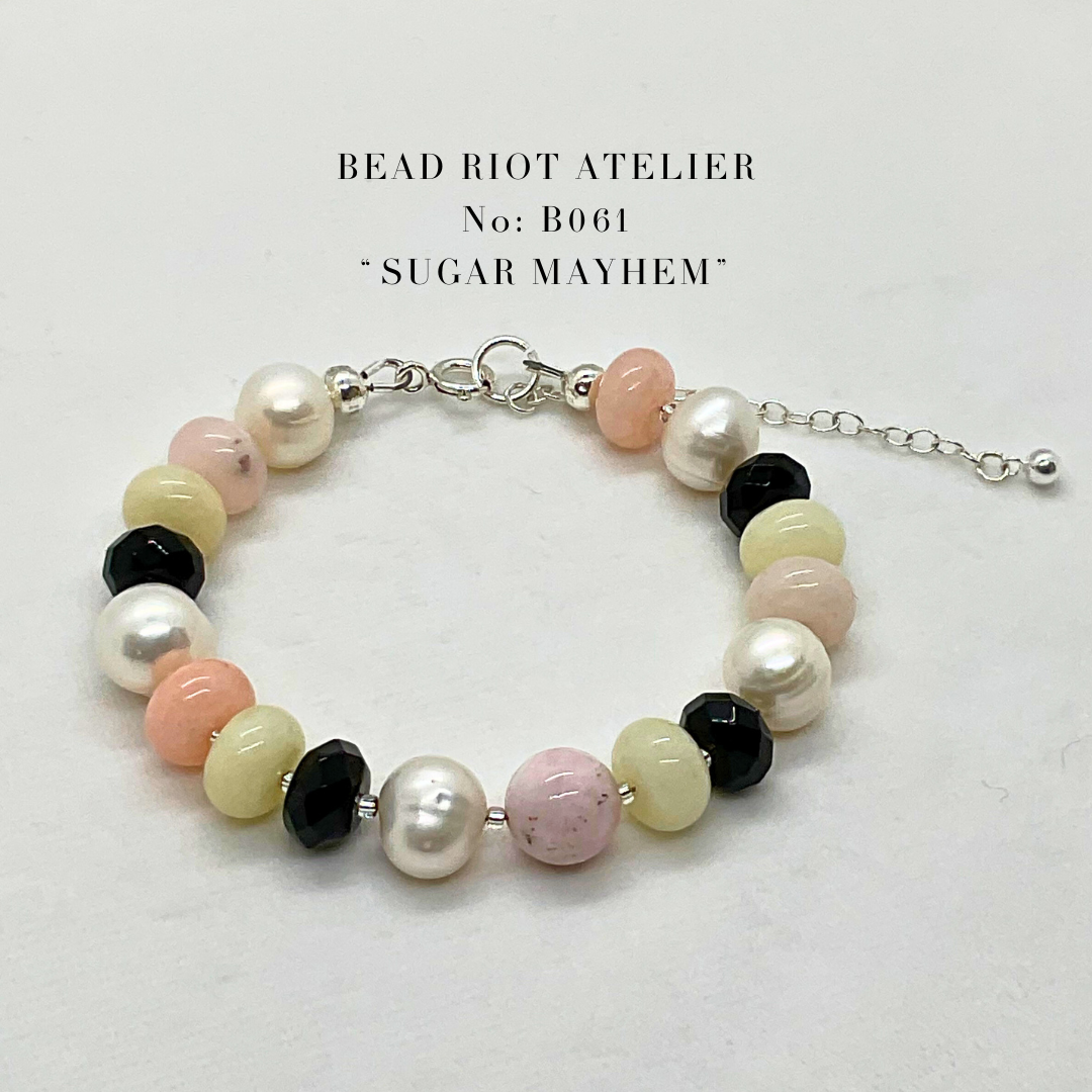 Statement pearls in necklaces and bracelets measure 10 - 11mm and Gem stone vary from 8mm diameter to smaller sizes. Extender chains are sterling silver or gold plated.