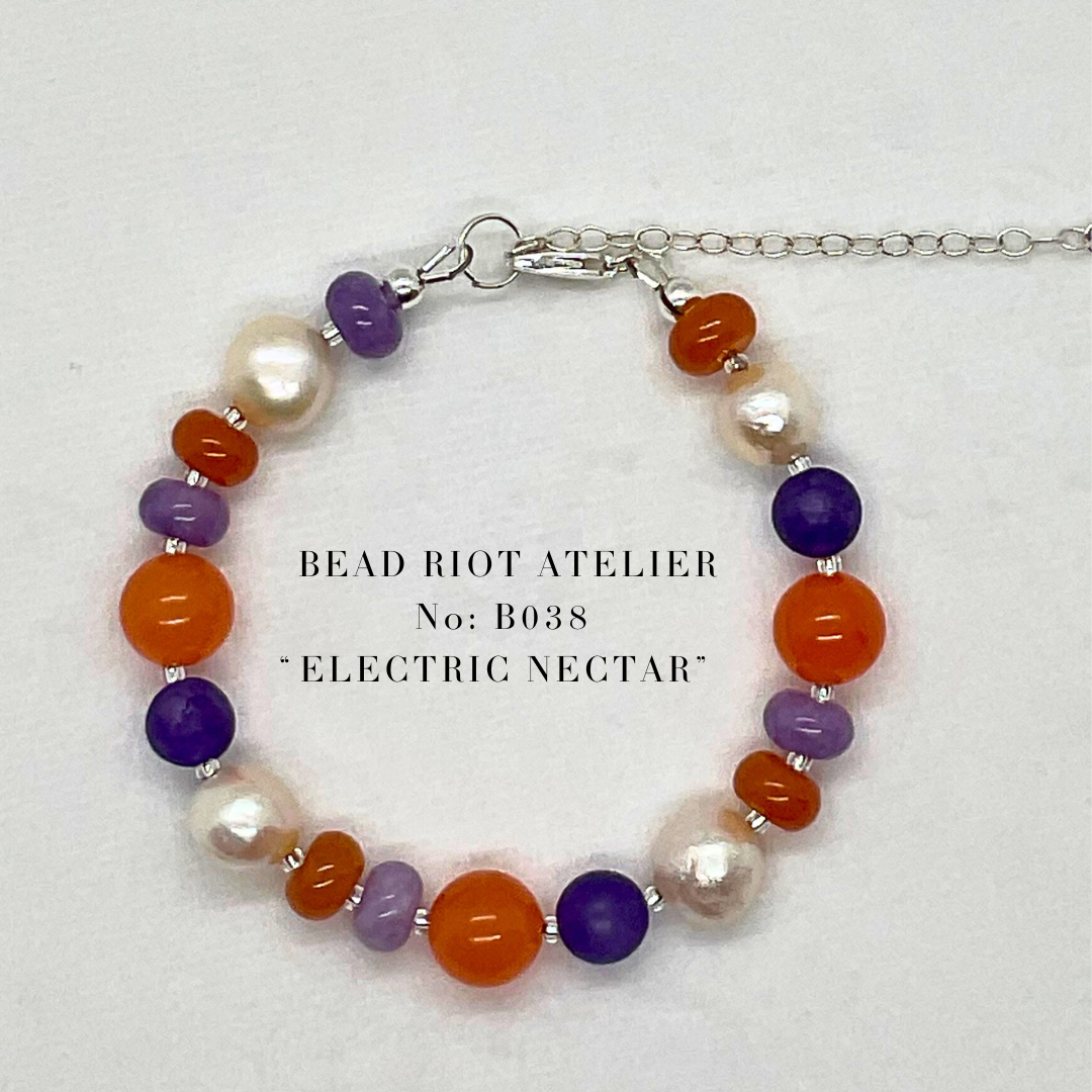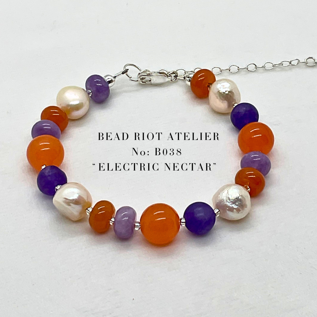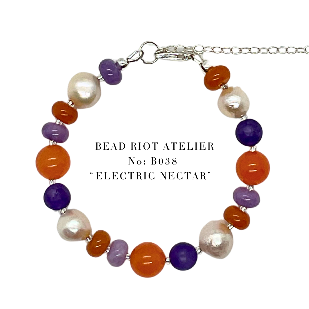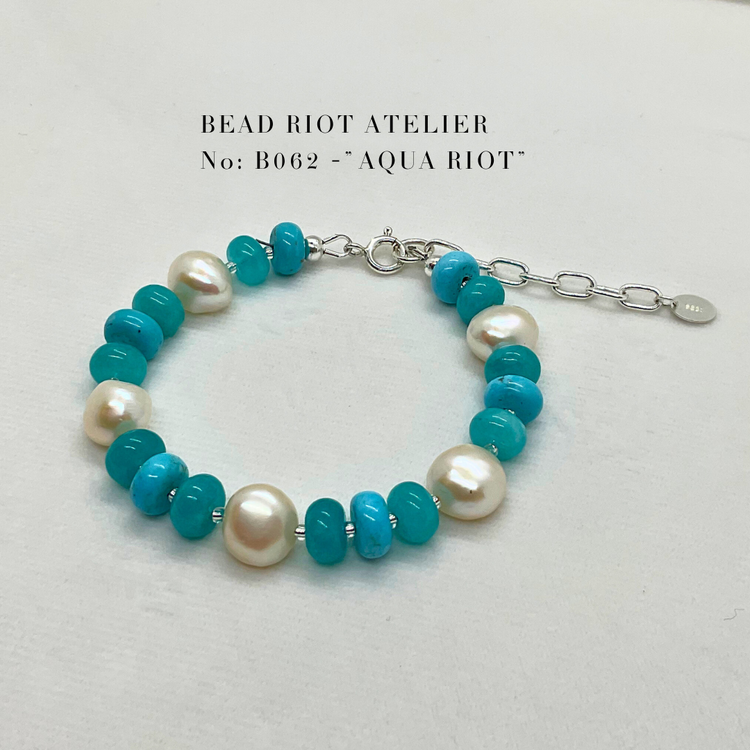 Statement pearls in necklaces and bracelets measure 10 - 11mm and Gem stone vary from 8mm diameter to smaller sizes. Extender chains are sterling silver or gold plated.